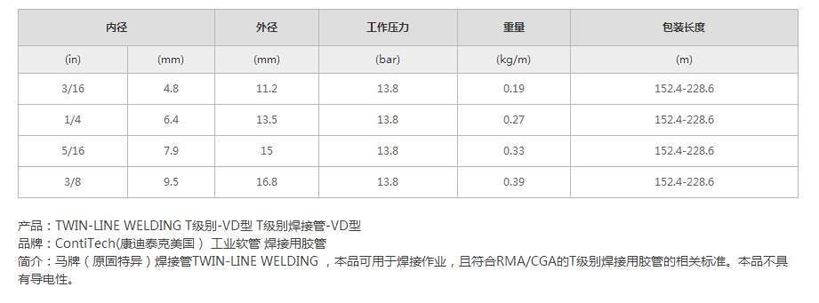 用途:本品可用于焊接作業,且符合RMA/CGA的T級別焊接用膠管。本品不具有導電性。