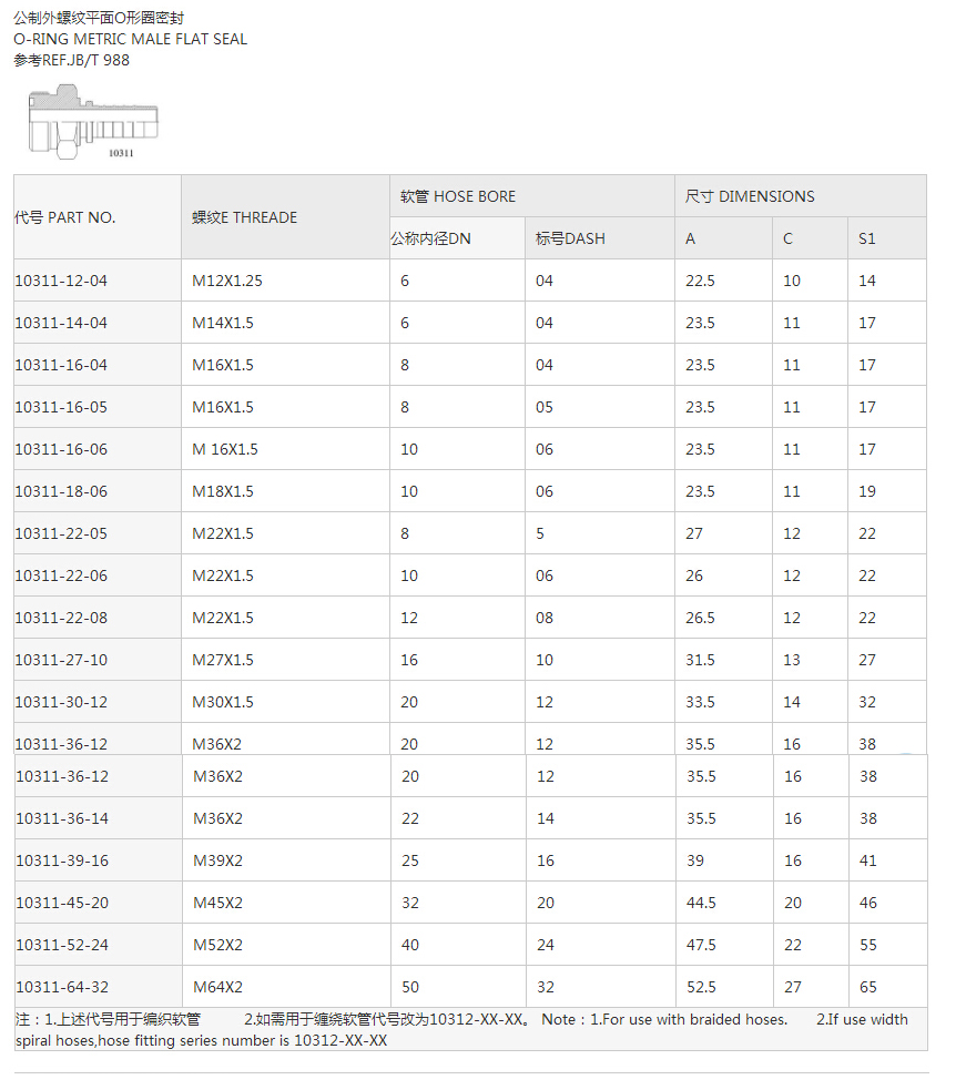 10311公制外螺紋平面O型密封系列