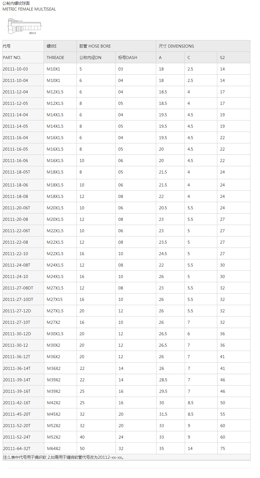 20111公制內螺紋球面系列